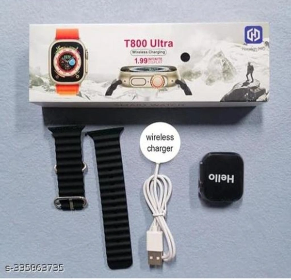 Name: T800 Ultra Biggest Display Smart Watch with Bluetooth Calling Smart Watch Wireless Magnetic Charger Fitness Hd Display Smartwatch black Strap Free Size